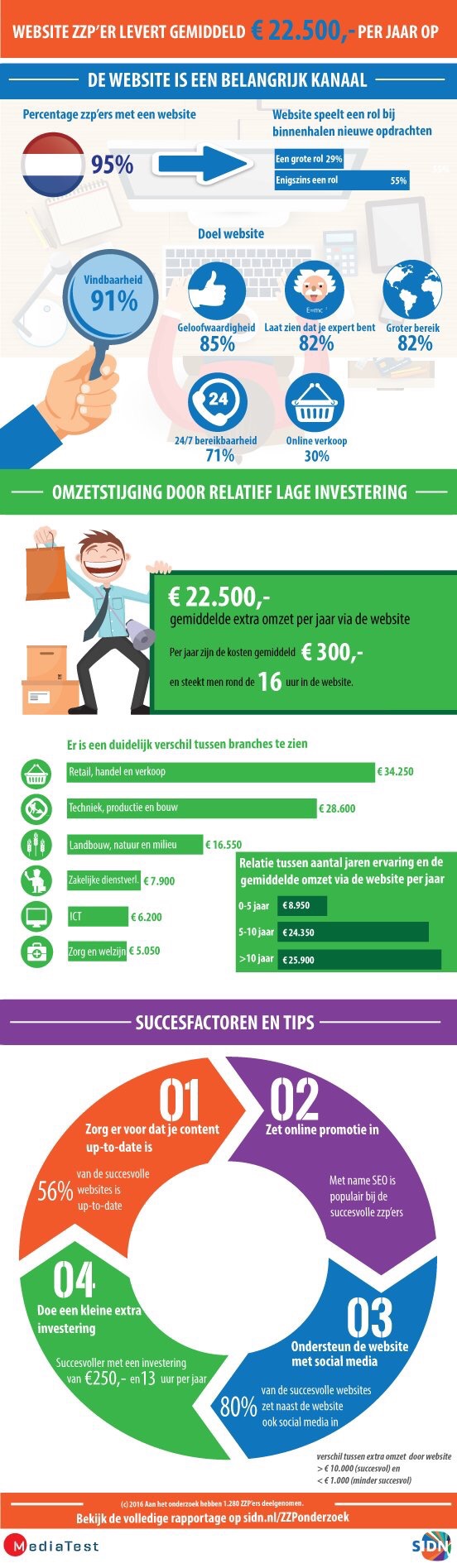 Wel zit er veel verschil in welke branches en hoe actief de ZZP’ers zelf zijn met actuele content en social media als ondersteuning van hun website.